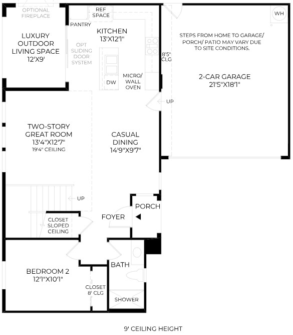 The Elina home design offers an alluring mix of elegant design and functional living spaces. Entering through the foyer, you are greeted by an inviting open floor plan that seamlessly connects a two-story great room, casual dining area, and gourmet kitchen that features a central island with breakfast bar, wraparound counter and cabinet space, and a spacious pantry.