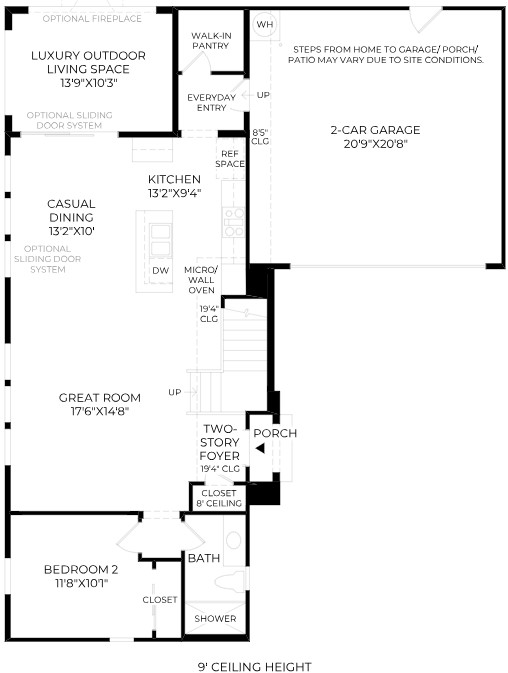 The Lyda's beautiful open-concept two-story floor plan creates the ideal atmosphere for your dream lifestlye. An airy two-story foyer flows into the expansive great room and casual dining area, with views to the beautiful luxury outdoor living space. Defining the well-appointed kitchen are a large center island with breakfast bar, plenty of counter and cabinet space, and a sizable walk-in pantry.