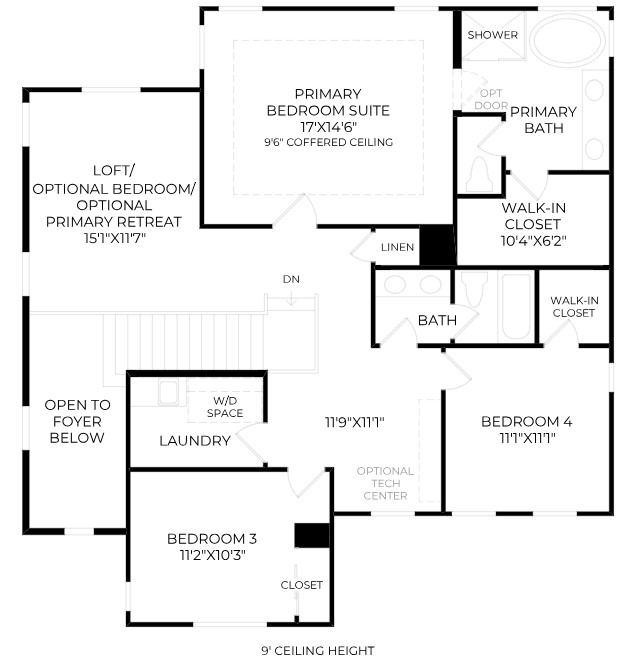 The exquisite Prairie home design features elegantly designed living spaces that are perfect for entertaining and relaxing. An impressive two-story foyer opens onto the great room with access to the luxury outdoor living space. The bright casual dining area is adjacent to the well-designed kitchen, highlighted by an oversized center island with a breakfast bar, wraparound counter and cabinet space, and a roomy pantry. The elegant primary bedroom suite is complemented by a beautiful coffered ceiling, a generous walk-in closet, and a gracious primary bath with dual-sink vanity, a large soaking tub, a luxe shower, and a private water closet. Secondary bedrooms, one with a walk-in closet, share a hall bath with a separate dual-sink vanity area. Additional highlights include an ample loft, conveniently located second-floor laundry, a desirable first-floor bedroom with a closet and shared hall bath off the foyer, and additional storage throughout.